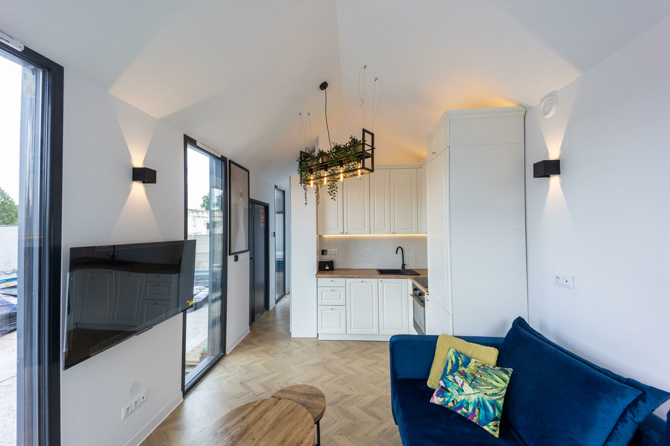Przedstawiamy na sprzedaż komfortowy domek mobilny o powierzchni użytkowej ok 38 m2 (42 m2 po obrysie bryły), który wyróżnia się niezwykłą funkcjonalnością i bogatym wyposażeniem.