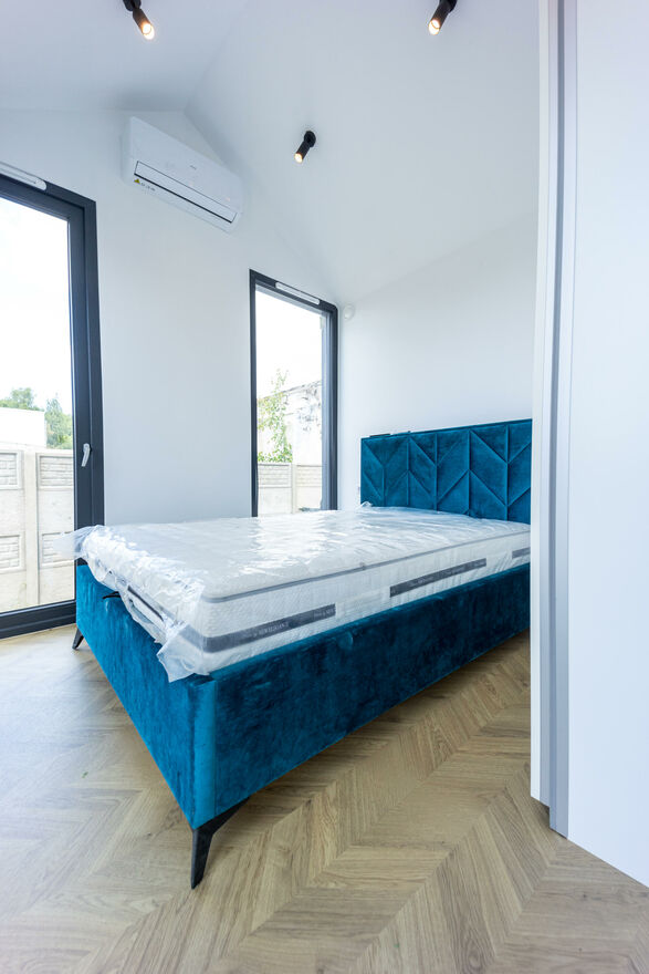 - STOLARKA DRZWIOWA I OKIENNA: Zamontowano nowe, wysokiej jakości okna trzyszybowe, drzwi zewnętrzne antywłamaniowe oraz piękne drzwi wewnętrzne drewniane. W oknach zamontowane oświetlenie LED dodające elegancji całej strukturze.