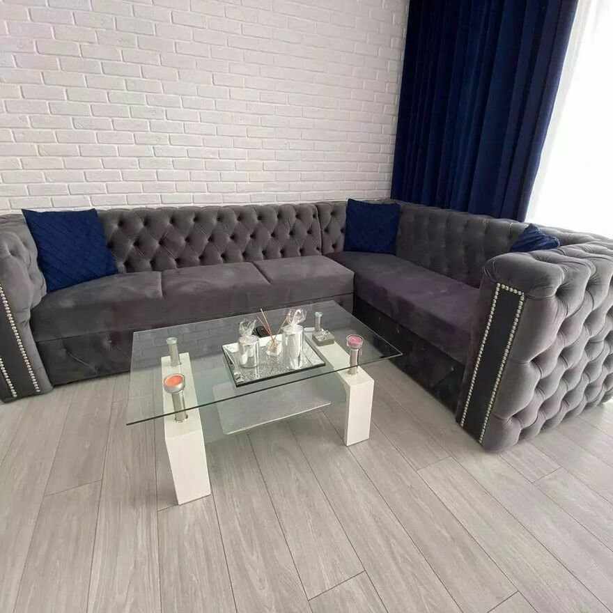 Glamour chesterfield naroznik głęboko pikowany kryształki