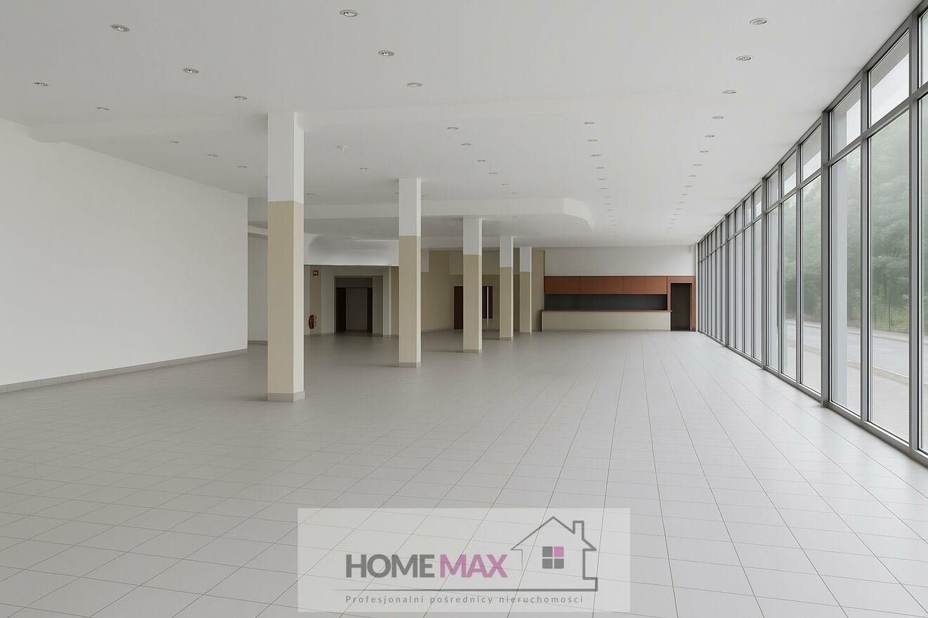 Reprezentacyjna, przeszklona elewacja z dużą powierzchnią reklamową - idealna ekspozycja dla działalności handlowej