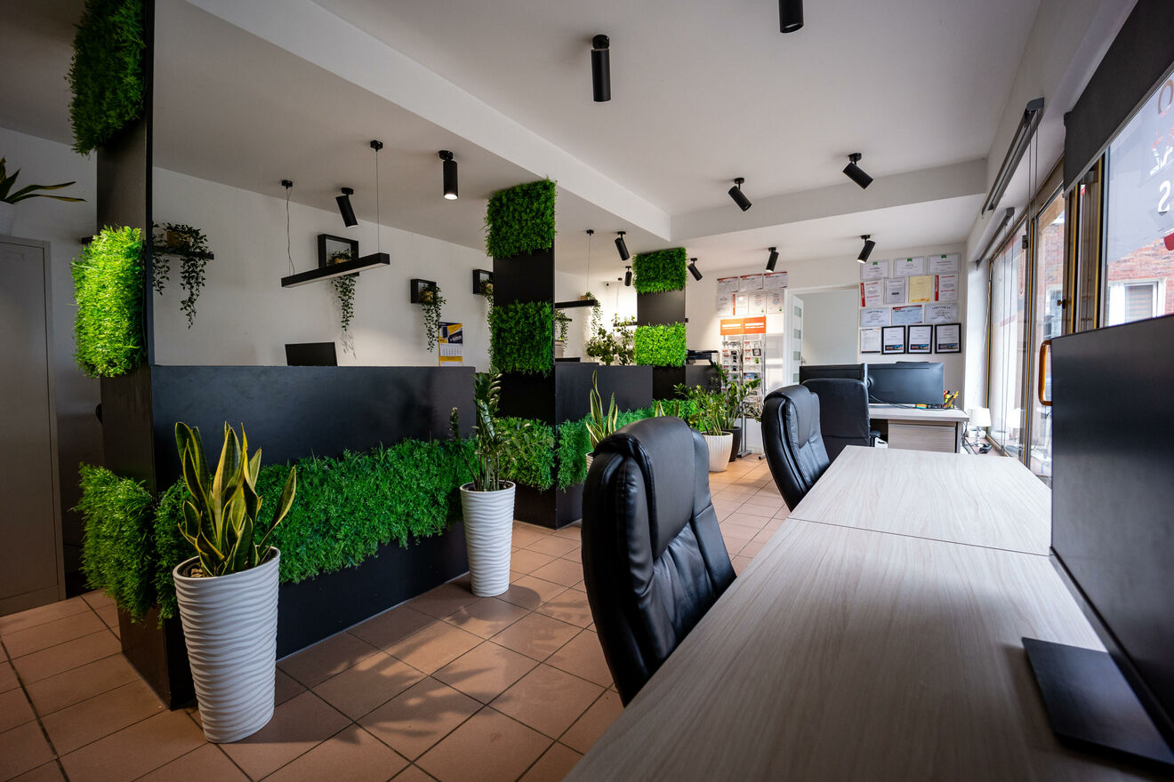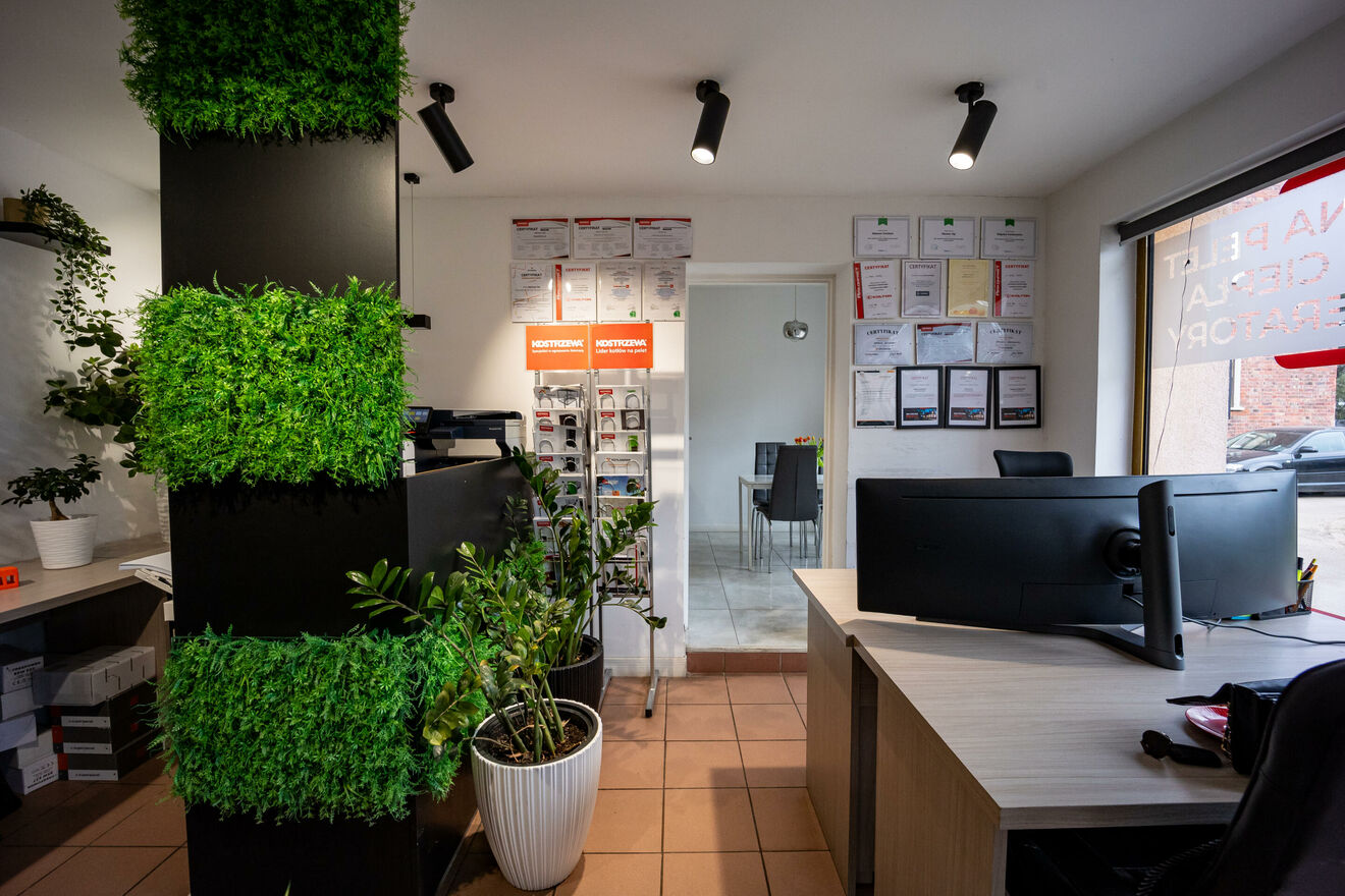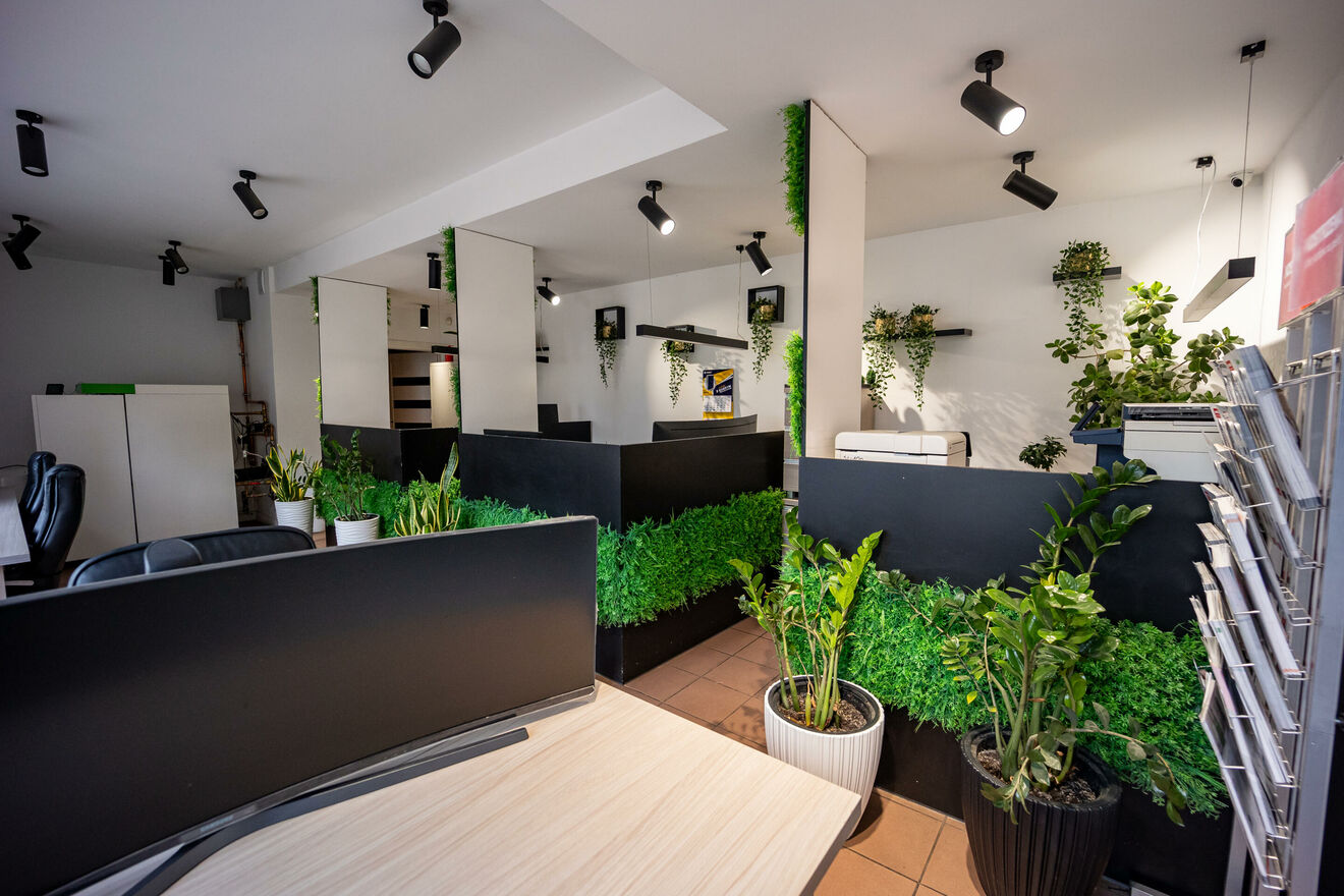 - przestronnego pomieszczenia z wydzielonymi miejscami dla pracowników;