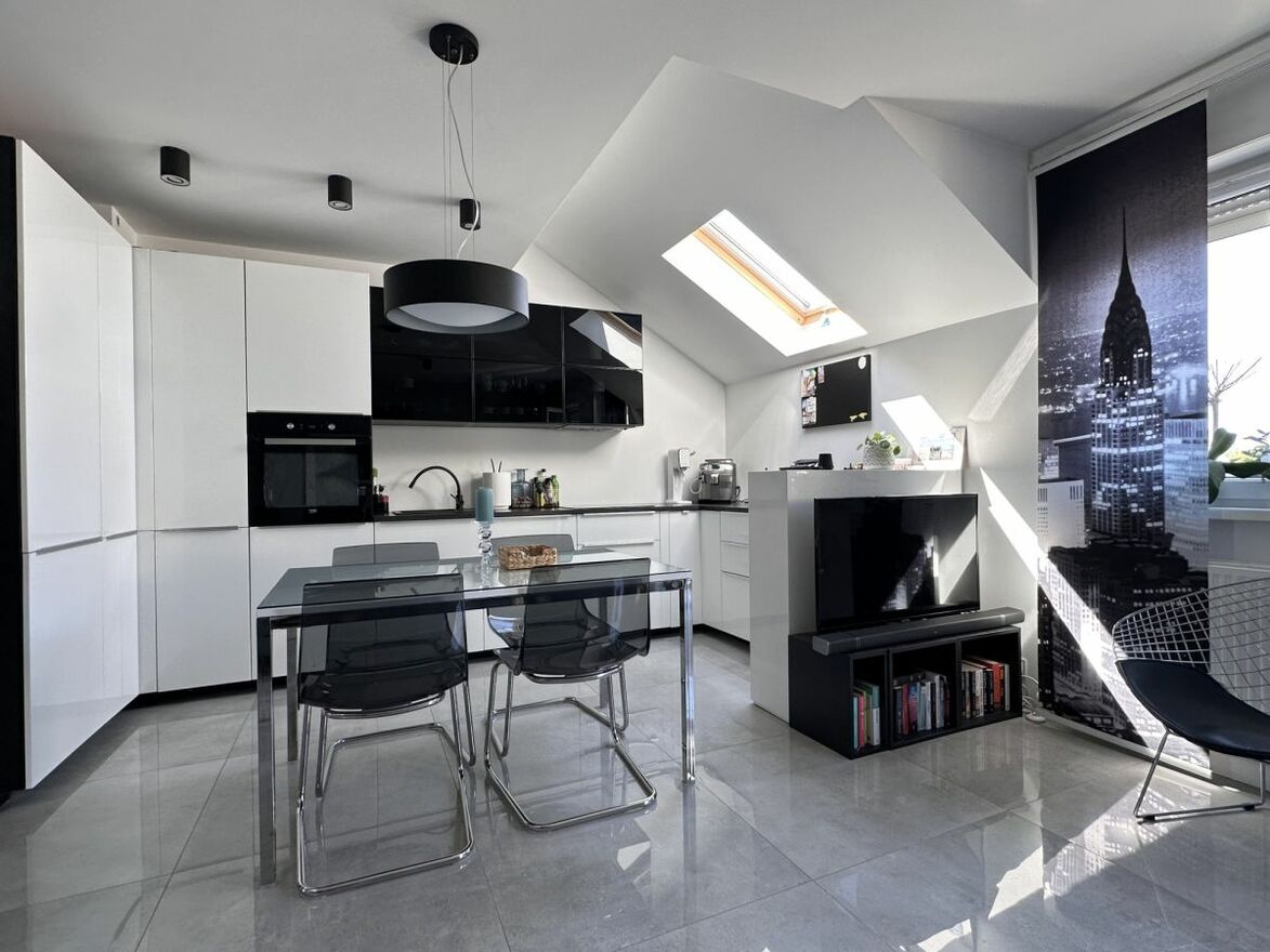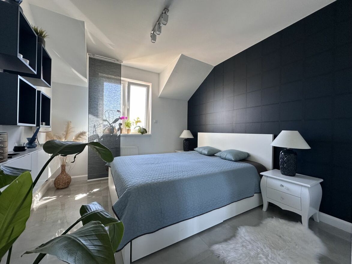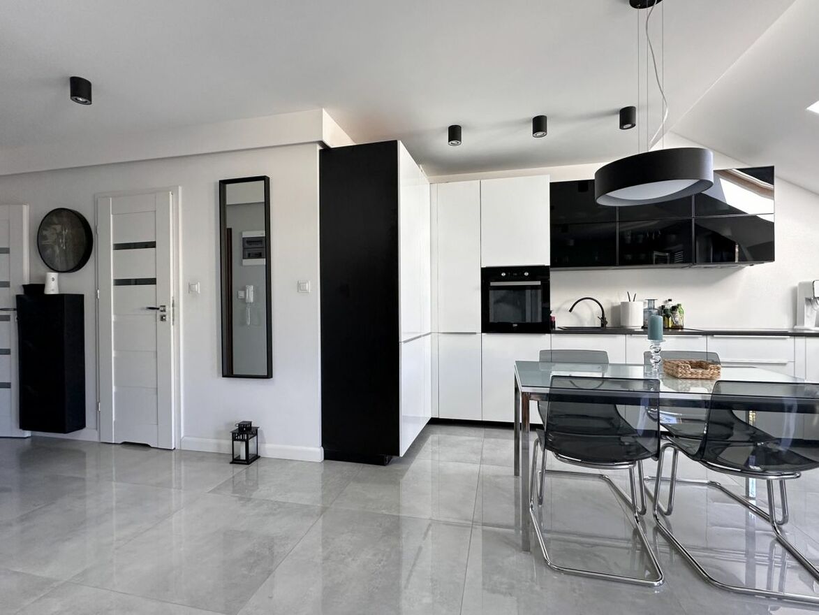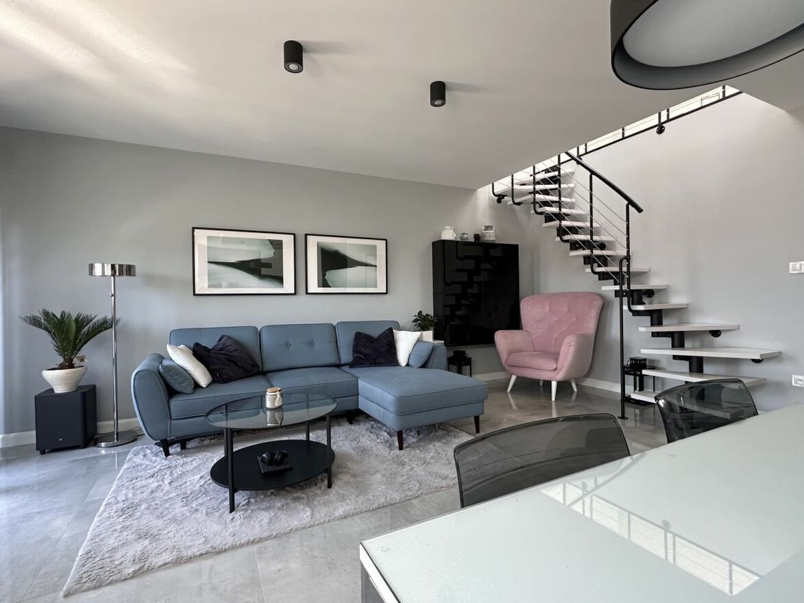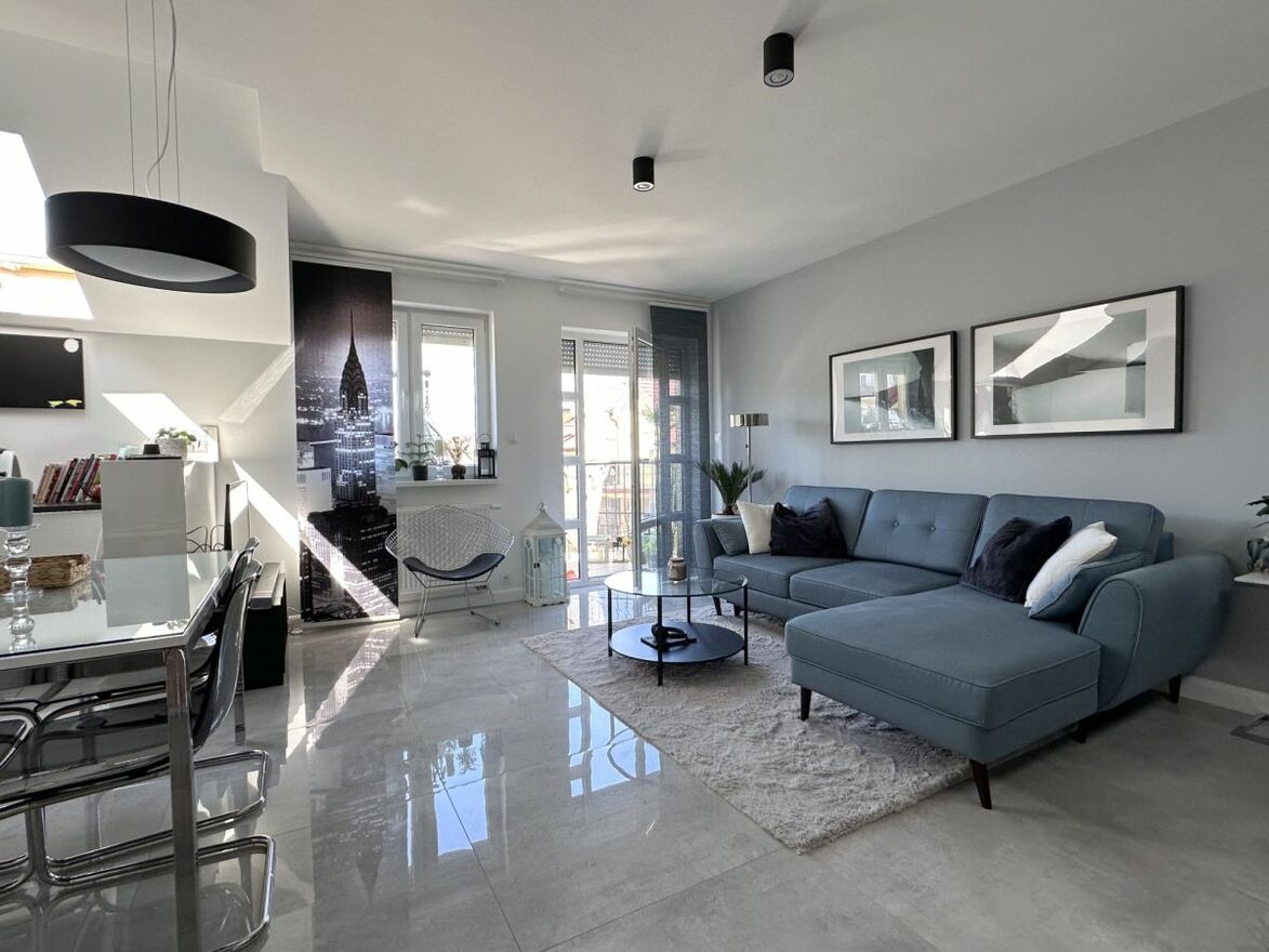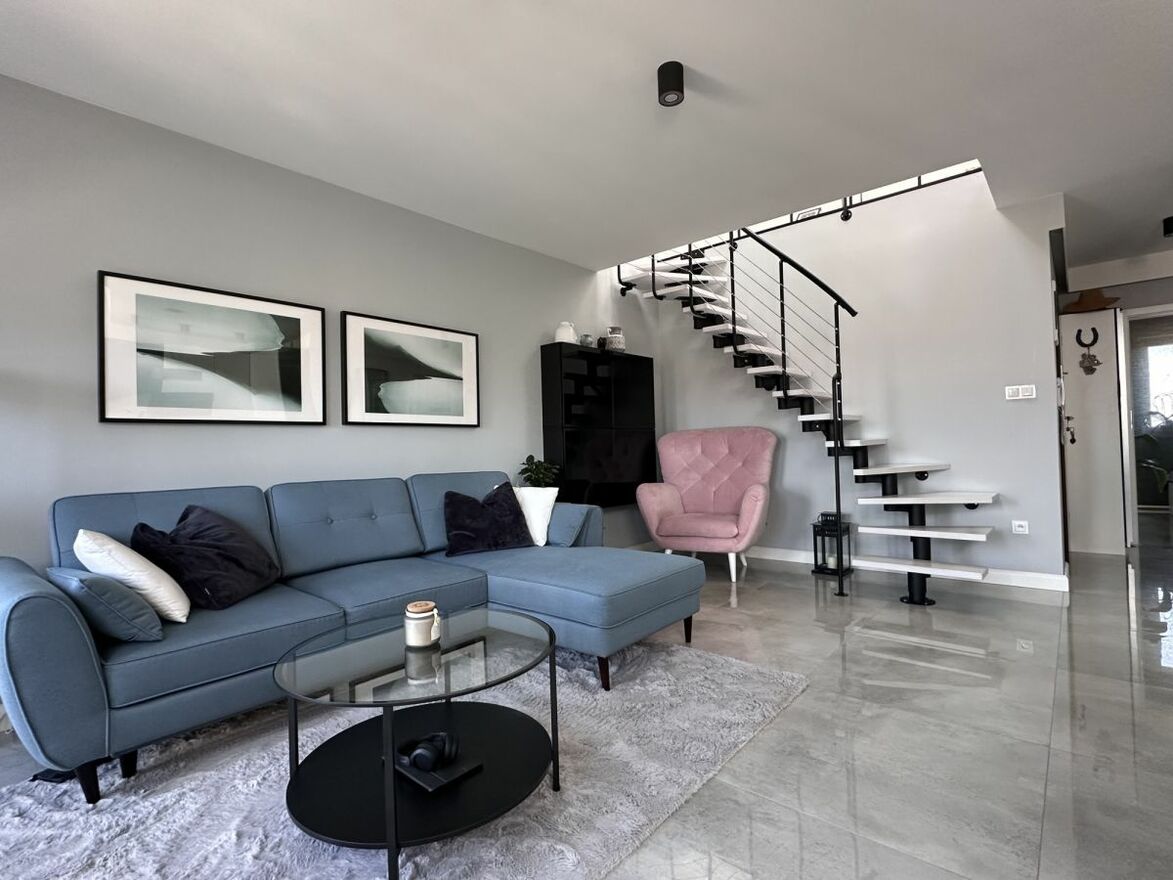 Eleganckie 2-poziomowe mieszkanie, o powierzchni całkowitej 120 m² (po podłodze) znajduje się na trzecim piętrze w kameralnym trzypiętrowym budynku. Przy wykończeniu mieszkania zastosowano wysokiej jakości materiały oraz meble bardzo dobrej klasy. Mieszkanie charakteryzuje się niezwykle funkcjonalnym układem, jest bardzo jasne,ciepłe i przestronne.