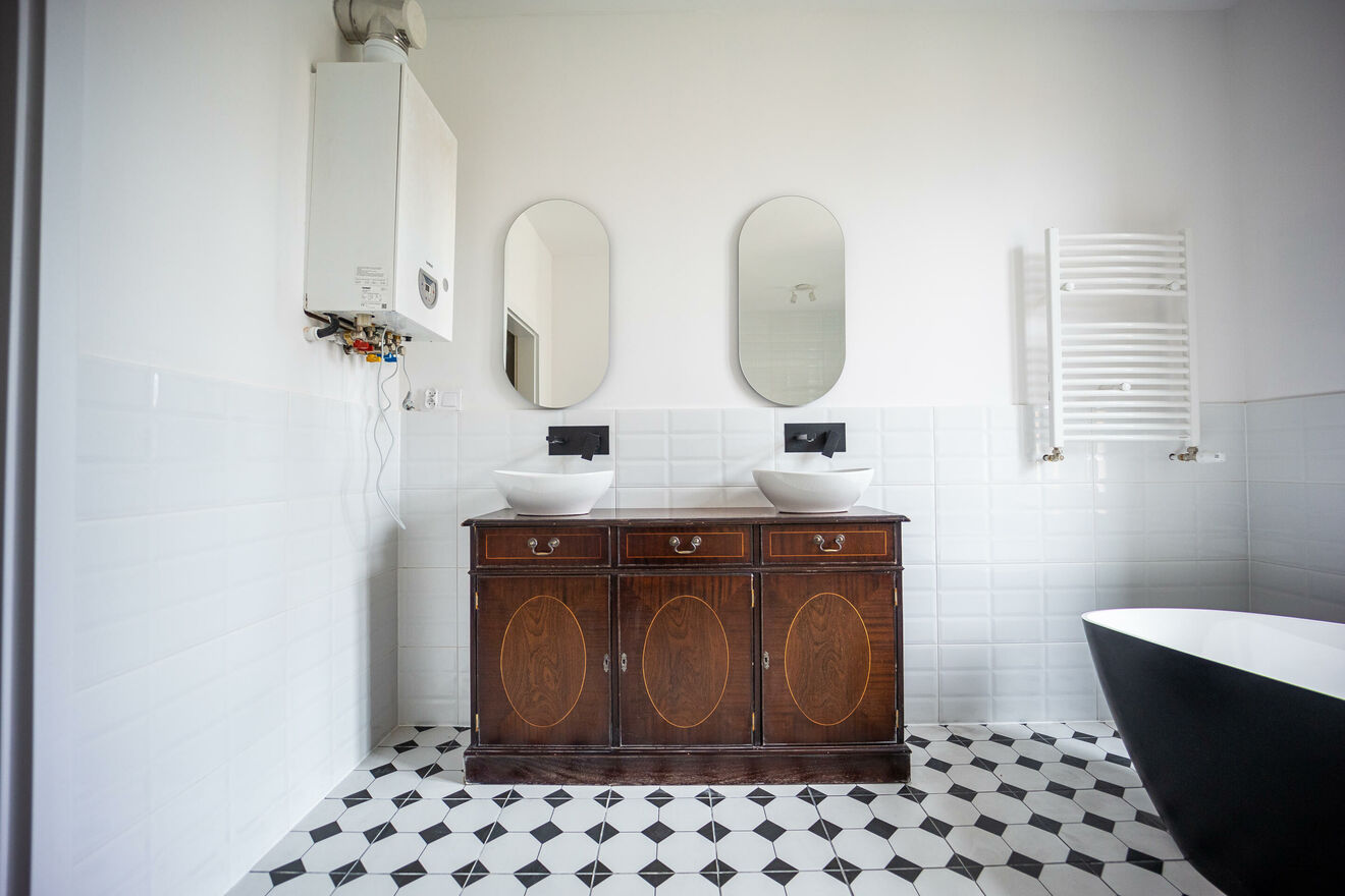 W łazience nowy piec dwufunkcyjny marki Termet.