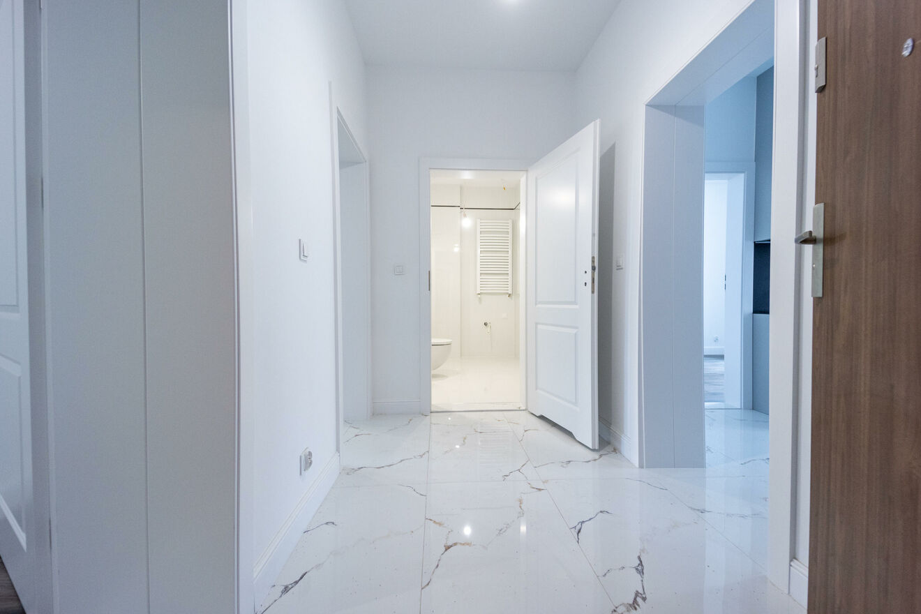 - dużej i wygodnej łazienki (WC wraz z bidettą, prysznic z odpływem liniowym, miejsce na umywalkę oraz pralkę);