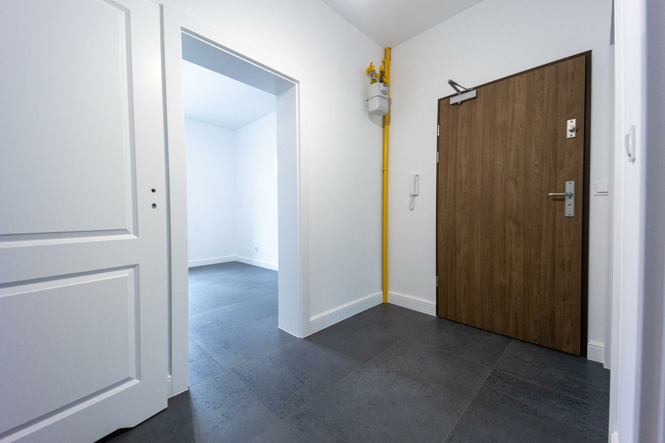 Mieszkanie po generalnym remoncie, na podłodze panele winylowe oraz gustowny gres, na ścianach tynki maszynowe oraz wodoodporna farba lateksowa.