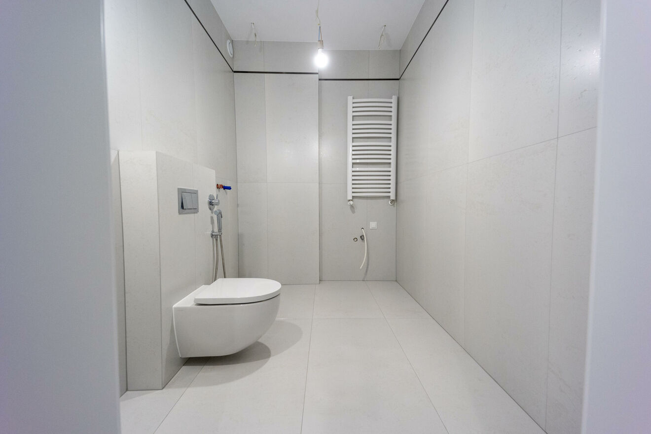 - dużej i wygodnej łazienki (WC wraz z bidettą, prysznic z odpływem liniowym, miejsce na umywalkę oraz pralkę);