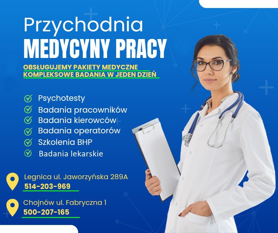 = MEDYCYNA PRACY W LEGNICY= KOMPLEKSOWE BADANIA PRACOWNIKÓW