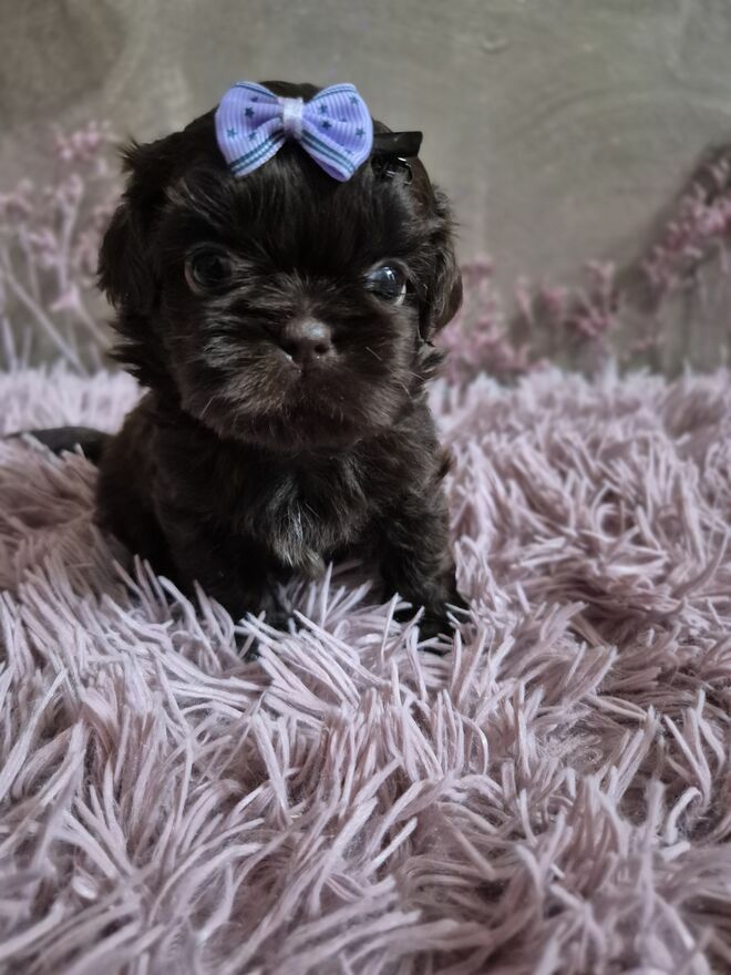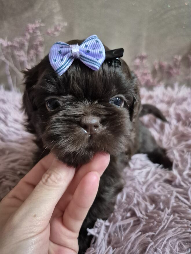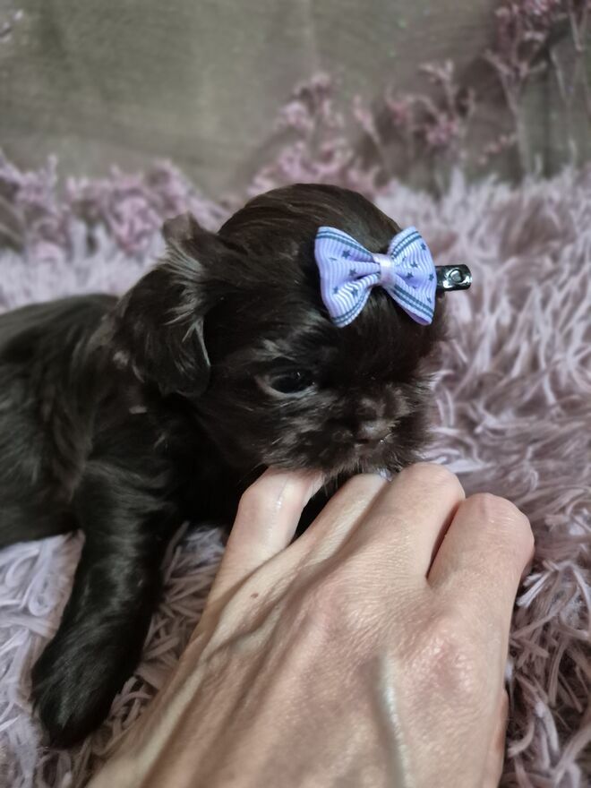 Przepiękny maleńki czekoladowy piesek Shih-Tzu
