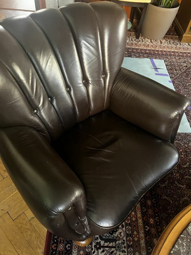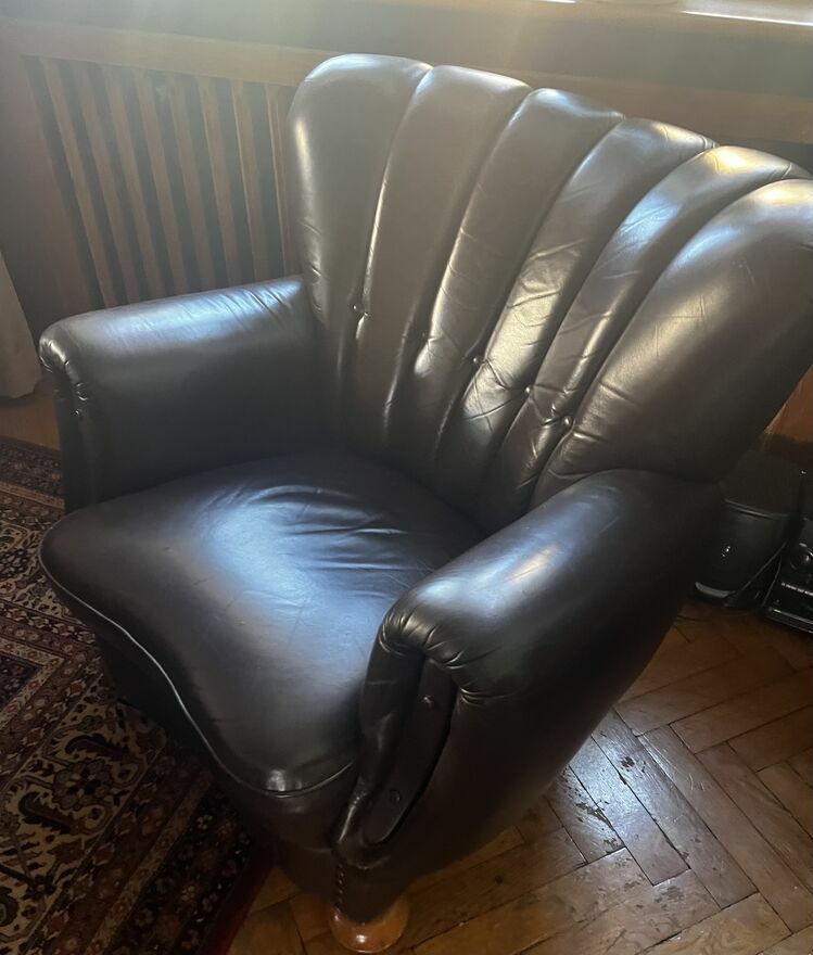 Elegancki i oryginalny skórzany komplet -dwa fotele plus kanapa (nierozkładana) w dobrym stanieOdbiór i transport we własnym zakresie